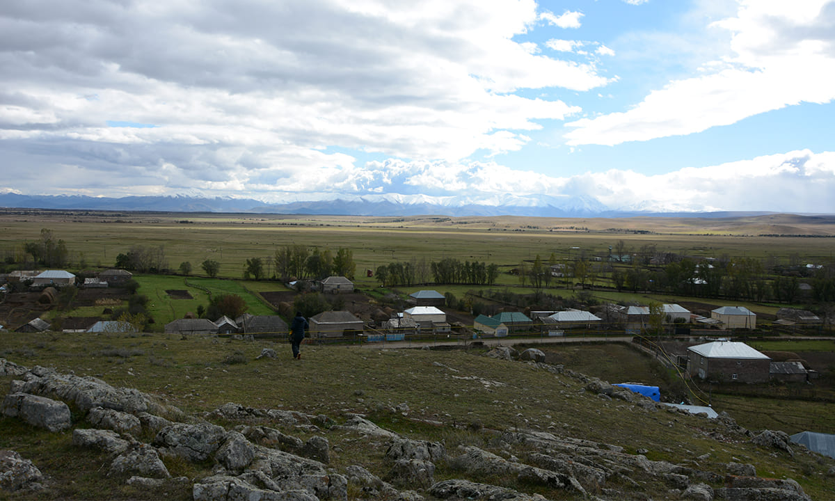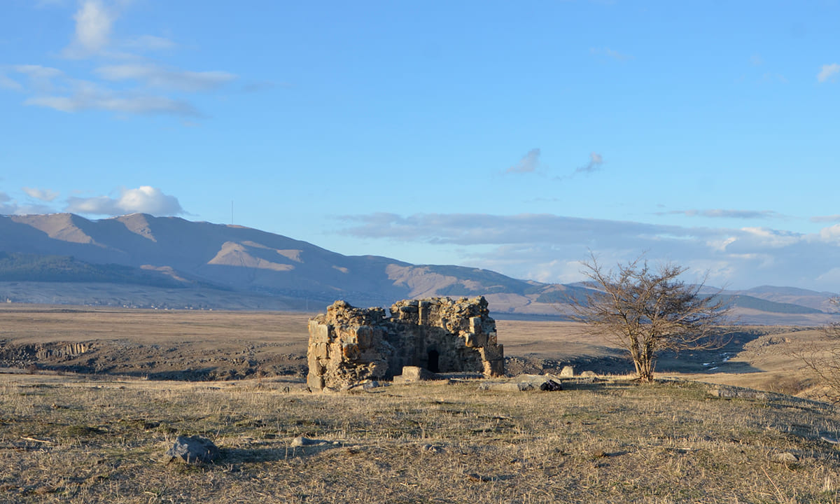 Medieval settlement of Sakaris. A medieval settlement with the remains of a single-nave church and a road junction with a fortress. Located southwest of the village of Mtisdziri, at the confluence of the Kirmizkilisa and Mamutlis Khevi rivers, on a high volcanic promontory. The church marked on the map of the Georgian geographer Vakhushi Bagrationi (18th century) should be the village of Sakarisi, which was located on the road to Javakheti.