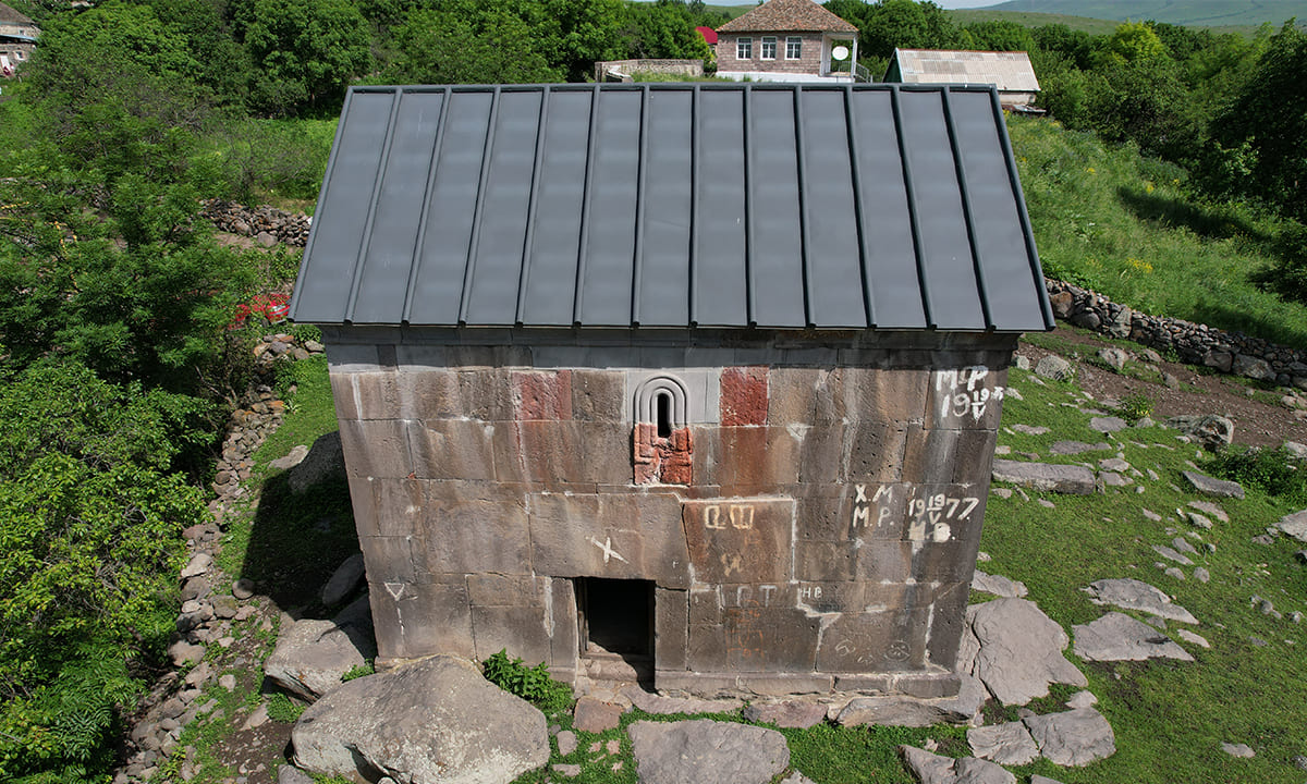 According to palaeographic data, it is dated to the 12th century. The same period is assigned to a two-line commemorative inscribed slab on the western façade of the church, which today lies in the interior of thetemple: “O Christ, have mercy upon Khachich, son of Sharai.”